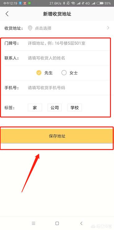 5.然后输入准确的地址、联系人姓名和联系电话。确认无误后,点击“保存”完成设置。
