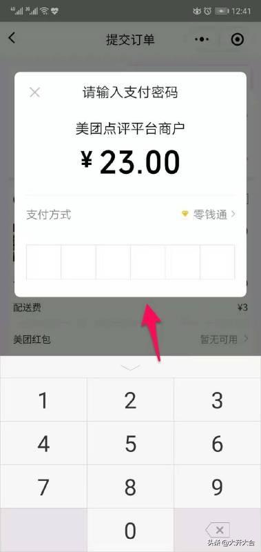 6.最后在付款界面中,输入支付密码即可。