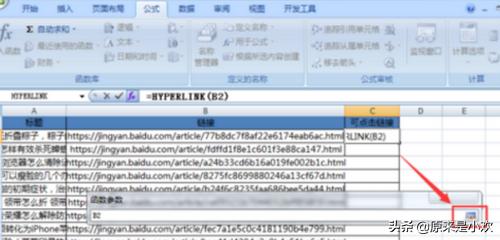 4、我们在用鼠标选中需要将连接转换为可点击链接的单元格,这里我以B2为例,选中之后,我们再点击最右侧的按钮,恢复即可。