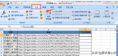 如何把表格中的链接变为可以点击的网址链接?1、首先,我们需要打开一张有链接的表格,我们在最后面加一列【可点击链接】,并选中C2单元格,我们再点击公式--函数库,找到查找与引用。