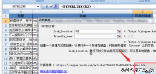 5、回到函数参数对话框,我们再点击确定,就可以看到文本格式的链接已经转换为可点击的网页链接了。