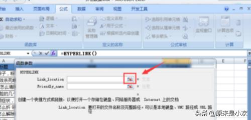 3、其次,弹出函数参数对话框,我们需要点击link-location右侧的第一个小箭头。如图所示。