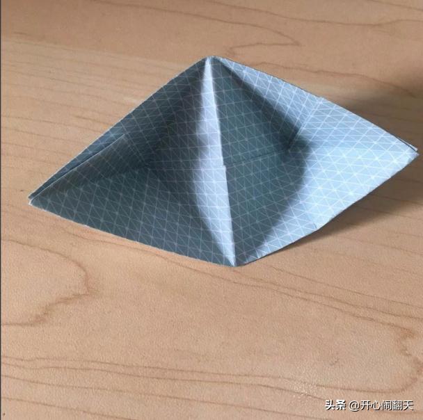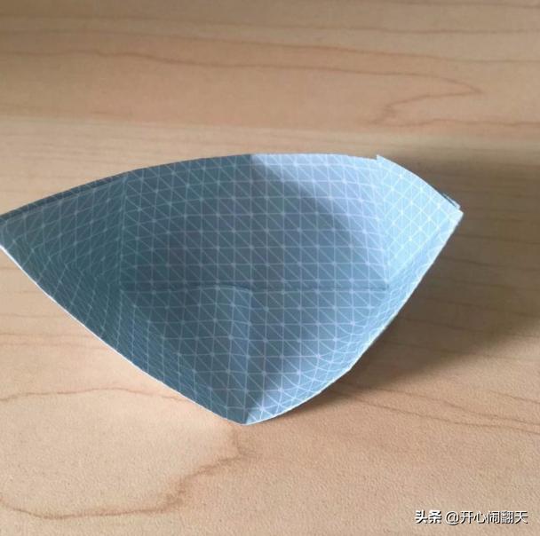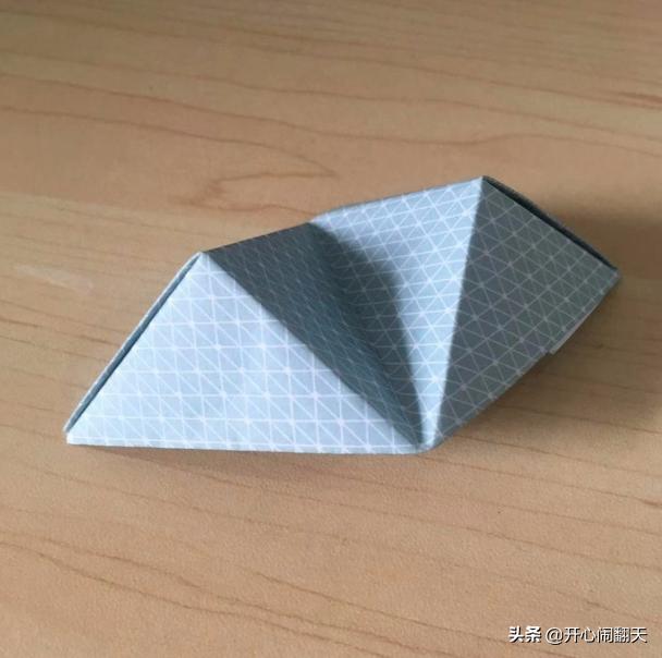 7、两边折叠之后会变成像这样,一个元宝的形状。