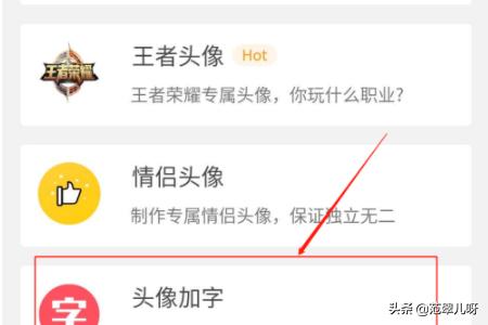 3、头像加字:选择头像加字。