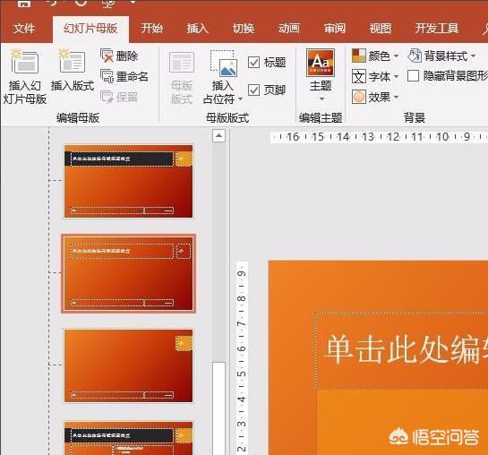 2、点击视图选项卡,找到母版,然后点击幻灯片母版,此时便进入到了幻灯片母版视图界面,在点击关闭母版视图之前,里面的样式都是可编辑状态。