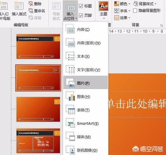 6、同样方式执行步骤5,在版式中插入文本占位符。