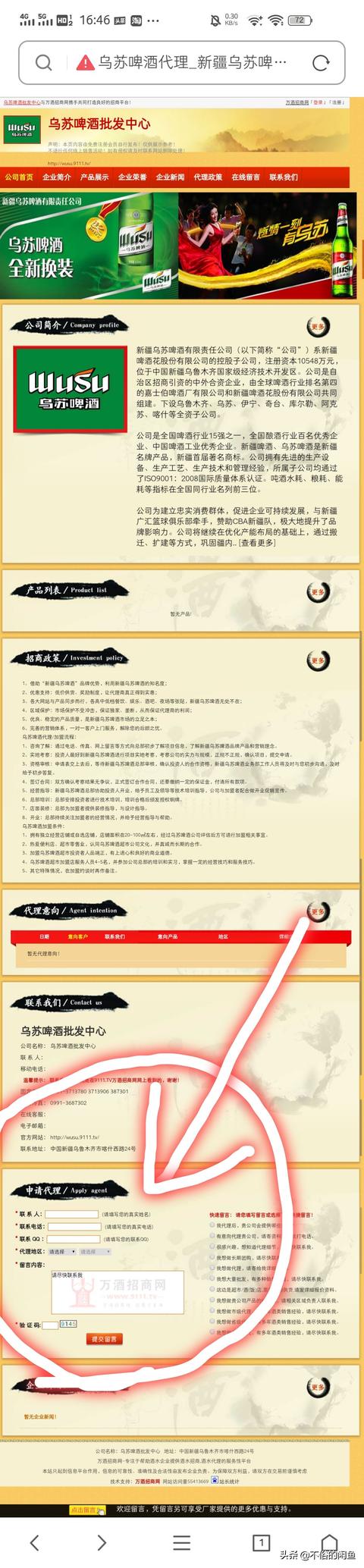 乌苏啤酒怎么代理官网?乌苏啤酒代理官网是:打开了,往下拉,我箭头指的就是这个填好申请代理,然后提交。