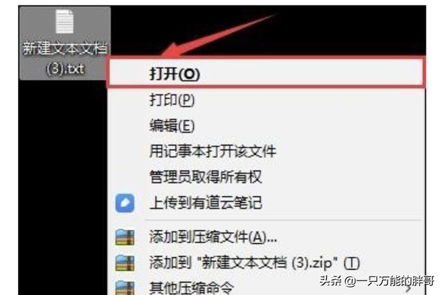 2、新建文本文档之后,使用鼠标单击选中,然后使用右键单击,在弹出的菜单中选择“打开”或者使用鼠标双击该文档打开。