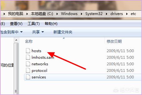 3、重新启动电脑,打开我的电脑,点击上的地址栏输入地址:C:\WINDOWS\system32\drivers\etc,找到弹出来的窗口中的HOSTS文件。