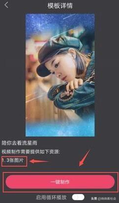 2.选择一个你喜欢的模板,点击进去新界面,然后,打开【一键制作】按钮,在新页面中添加喜欢的图片,再点击【下一步】。