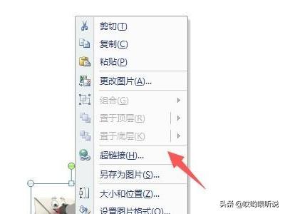 3、步骤三:然后选中图片,单击鼠标的右键,这时候就可以看到有一个超级链接了,现在点击超级链接就可以了。