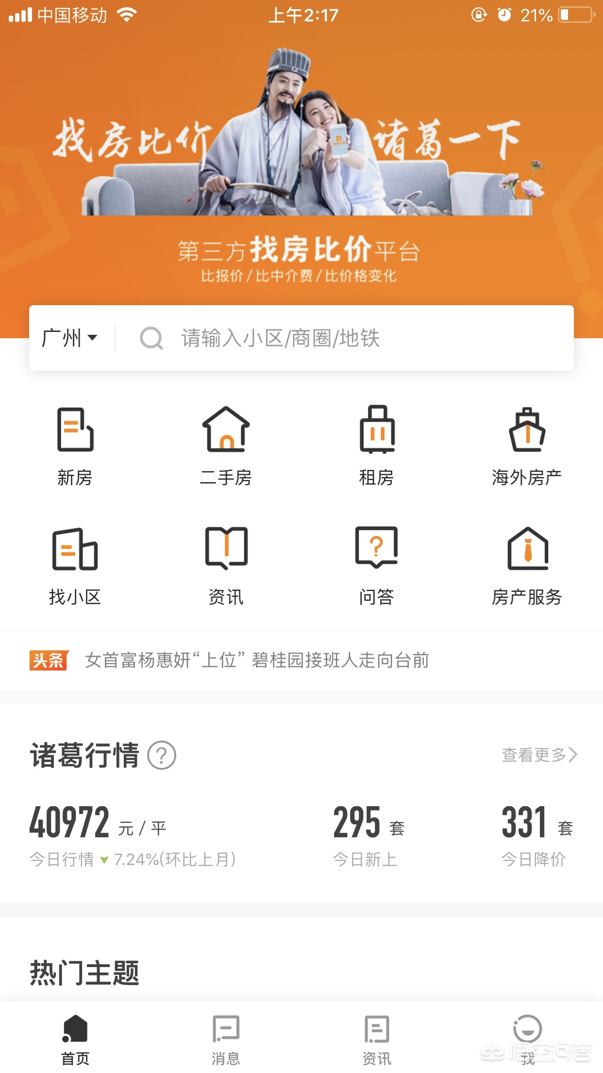 在哪个网站能看到广州最新、最真实的房价?传统网站有安居客、房天下!但是我推荐一个新兴网站!诸葛找房!房源真实无重复房源!诸葛找房是将当地主流网站房源聚合到一起然后进行清洗,剔除重复及虚假房源!你看到的信息会更靠谱!