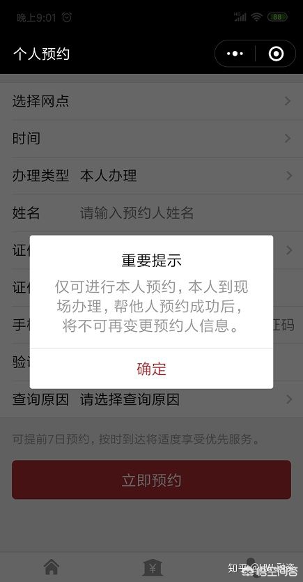 5、选择办理的网点,一般是选择你本人最方便的网点,再完整如实填入其它相关信息,点击“立即预约”就可以啦!
