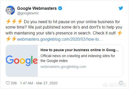 谷歌对疫情期间的网站管理员们提出了怎样的操作建议?为避免新冠病毒疫情导致的服务离线或欠费停机,谷歌已经现所有网站管理员发去了包含一套准则和常见问答的邮件通知。