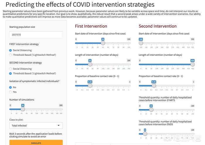 斯坦福大学推出的模拟围堵COVID-19疫情的交互式策略网站有何特点?斯坦福大学研究团队刚刚开发了一个互动式网站,其允许用户构建自定义模型,以评估不同的社会疏导干预措施,是如何影响 COVID-19 疫情是在一段时间内传播的。