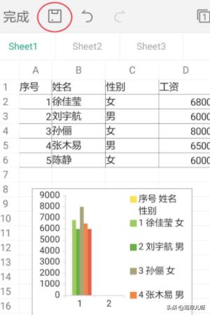 手机wps怎么做柱状图?1、在手机wps中打开一个需要做柱状图的表格,点击左下角红色线圈标记的位置。
