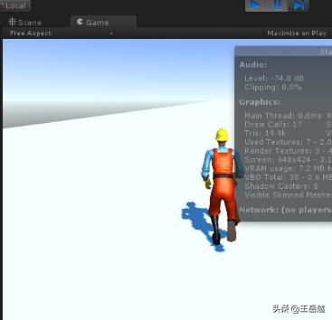 6.当点击Game视图上的“Stats”按钮,则弹出一个透明窗口,显示游戏的状态信息,如下图所示。
