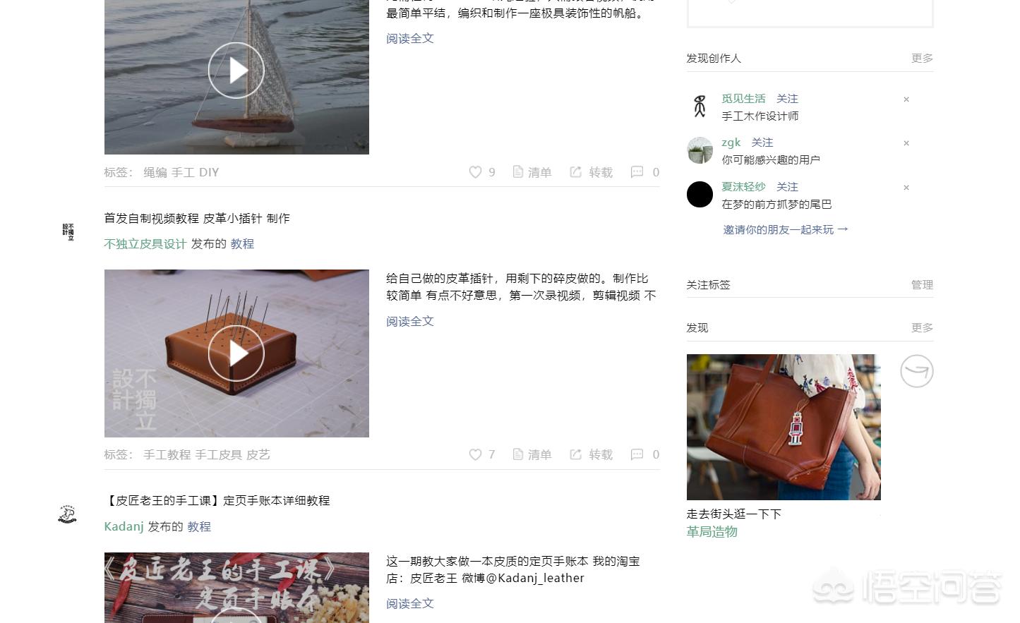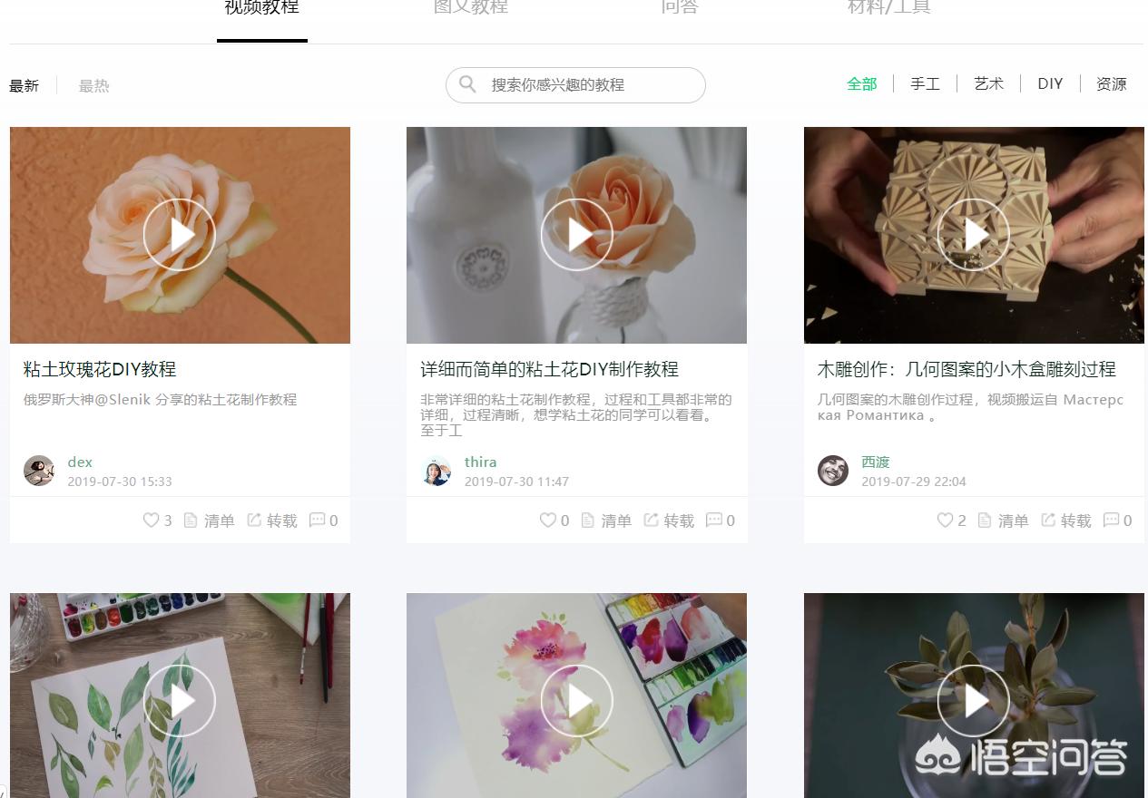 里面有视频教程,图文教程,探索发现,手工DIY,皮革,缝纫,刺绣,插画,美食等等手工课。